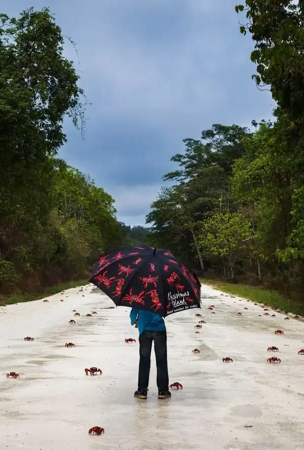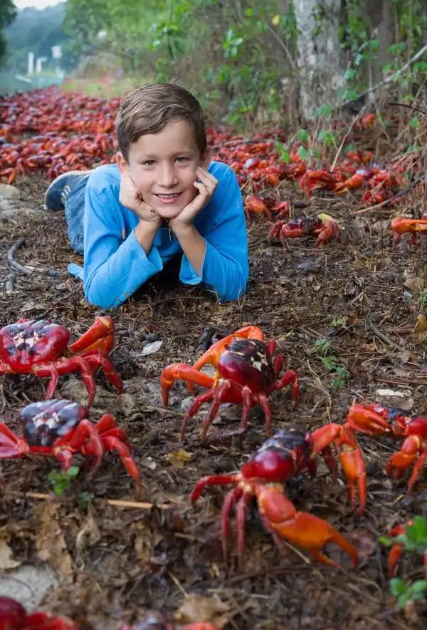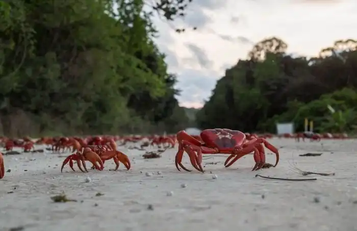 На острове Рождества, Австралия, началась ежегодная миграция красных крабов, двигающихся из леса к океану для воспроизведения потомства. Обычно миграция начинается в октябре, но в этом году она началась позже из-за задержки сезона. Чтобы избежать ДТП и уменьшить потери крабов на острове перекрывают основные дороги, сооружают тоннели, перелазы и надземные переходы. Общее число крабов может доходить до 120 миллионов.