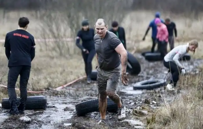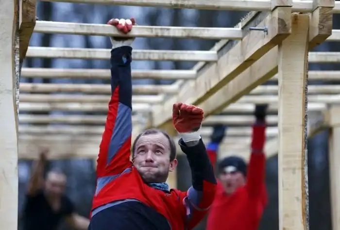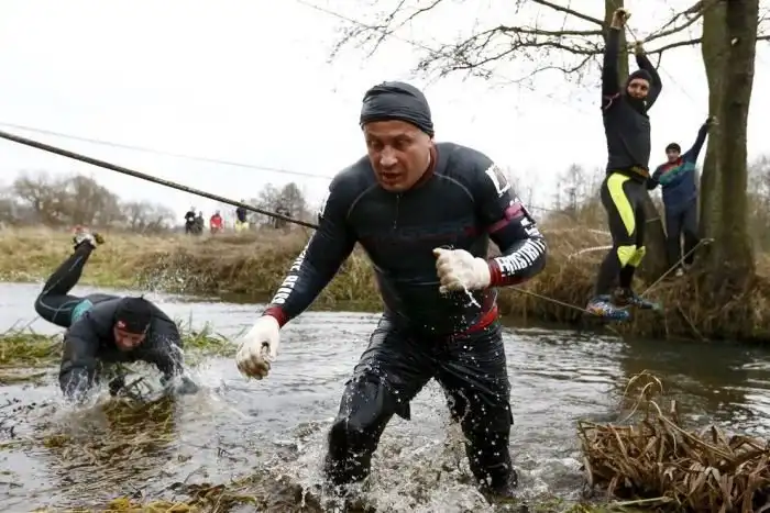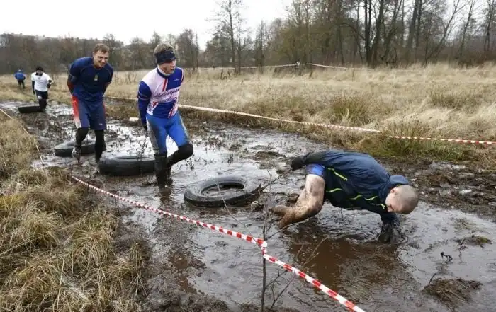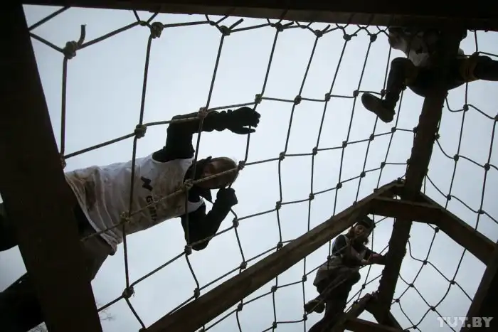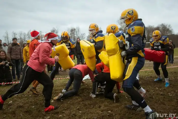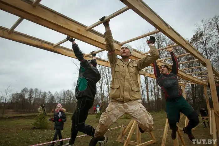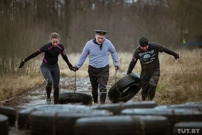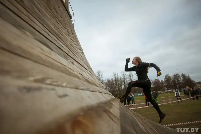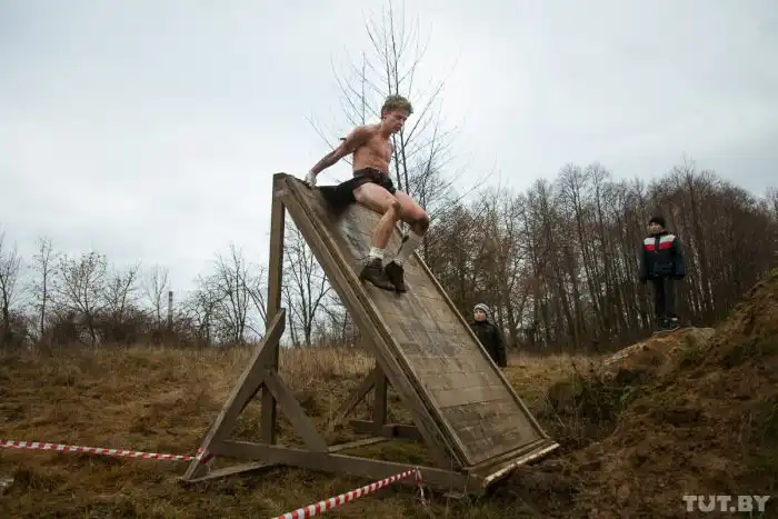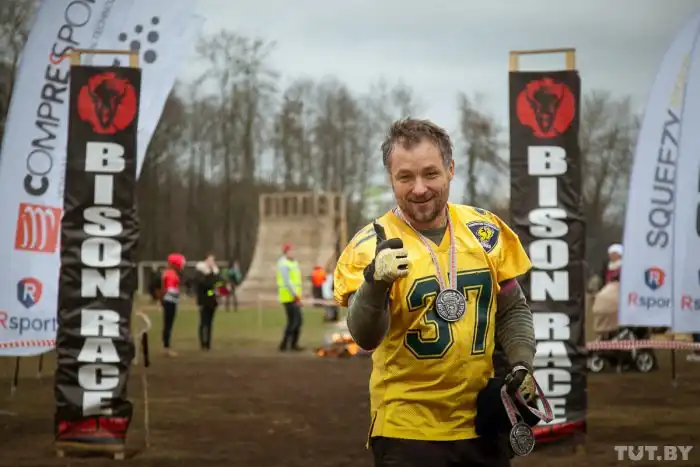 В субботу, 5 декабря, на стадионе белорусского города Жодино состоялся уже четвертый в этом году экстремальный забег Bison Race («гонки бизонов»). Холодная и ветреная погода не стала преградой для желающих испытать свои силы, и в забеге приняли участие более 300 человек. 7-километровая трасса включала около 30 различных испытаний, в том числе переход реки вброд, проход через команду американского футбола, тягу огромных покрышек, бег по грязи и многое другое. Как проходило это зрелищное мероприятие, расскажут фото с места события.