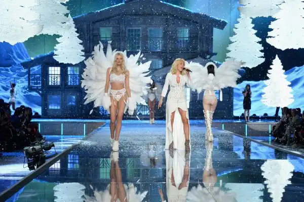 После перерыва вышла Адриана Лима в крыльях, сделанных из десятков бабочек, а Элли Голдинг в это время пела