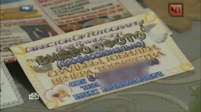 А вот так выглядит визитка фотографа, представляющегося, как «Раис Равильевич, Director Of Fotographi». Журналистам удалось связаться с фотографом под видом клиента. Им он сказал, что его услуги стоят 15 000 рублей, а сами работы не нуждаются в работы не нуждаются в пост-обработке. "А зачем их обрабатывать, если они хорошо сняты? Ничего художественного не будет, всё снято нормально, при печати всё делается", - заявил Раис Халиков.