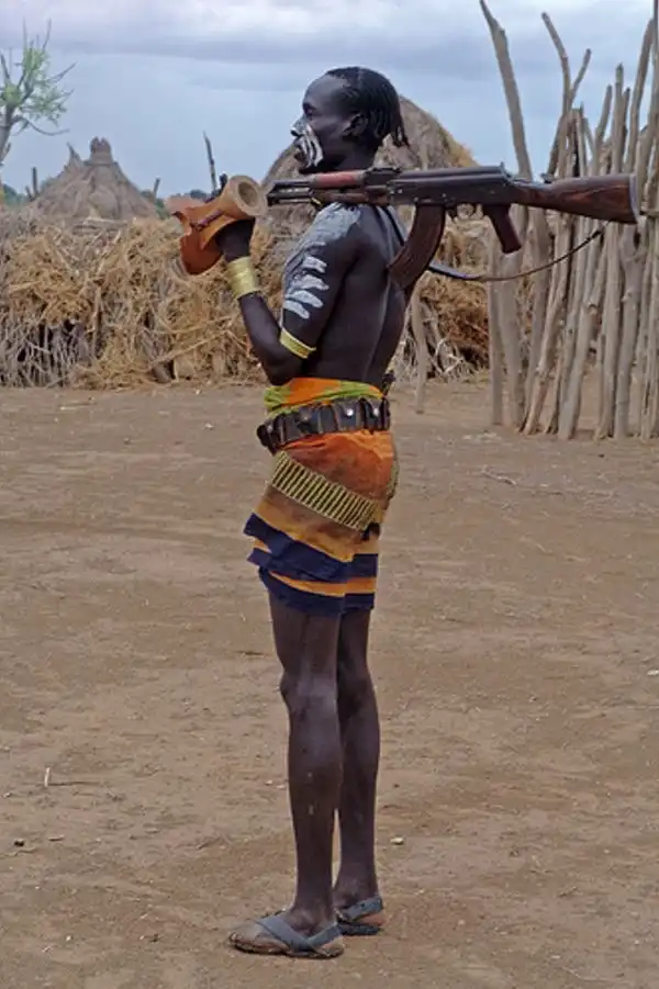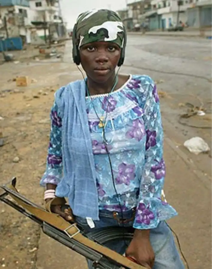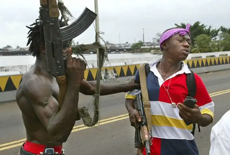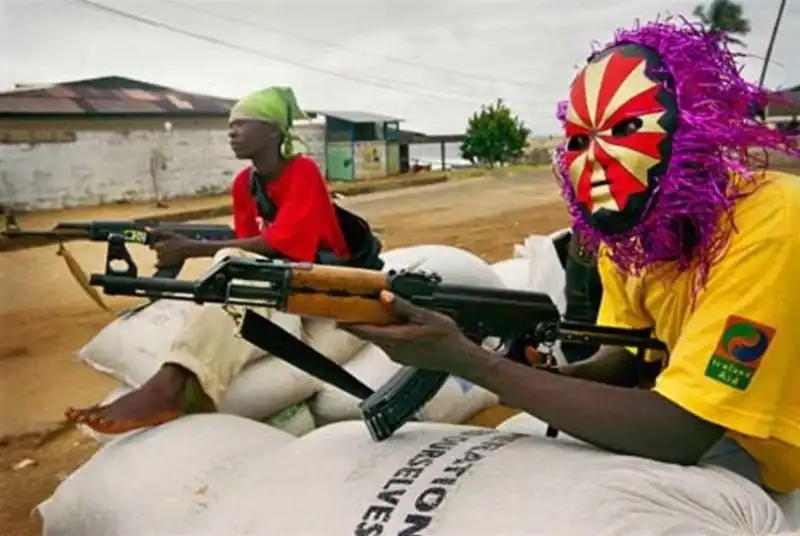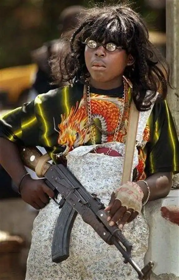 Кто против кого воюет в Африке, я не знаю - там без бутылки не разберешься. Но то, что там каждый второй с детства держит в руках автомат - факт. В отличие от оружия, со шмотом там ситуация похуже, поэтому ополченцы наряжаются кто во что горазд.