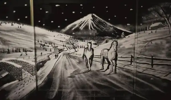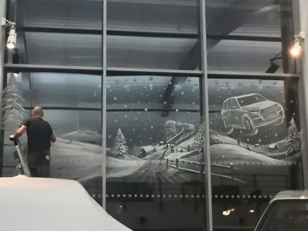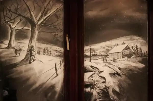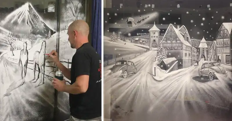 Пользователь Интернета создаёт на окнах настоящие картины с помощью "снежного" спрея