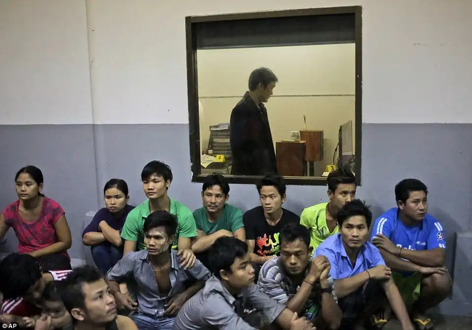 Приехавший из Мьянмы работник фабрики по чистке креветок и его жена находятся в тюремной камере после ареста.