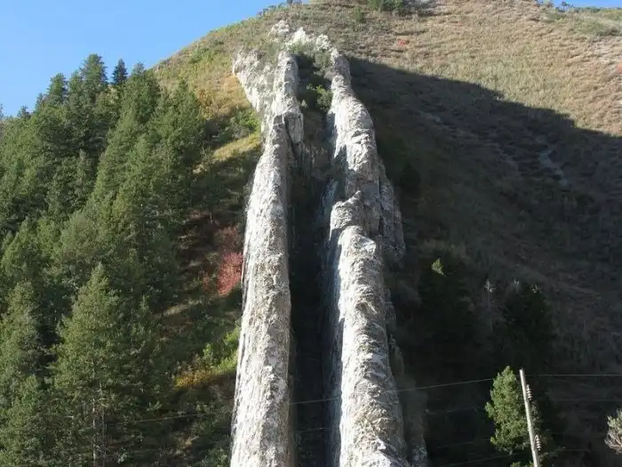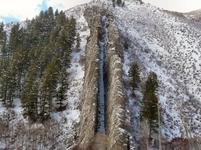 В штате Юта, США, есть необычная гора, которая носит название Спуск Дьявола. Гора состоит из двух параллельных "стен" высотой 12 - 14 метров, образующими что-то наподобие коридора длиной 60 метров. "Стены" состоят из жесткого сланцевого известняка, а между ними находится более мягкий известняк, который периодически вымывался осадками. Несколько миллионов лет понадобилось на то, чтобы осадки сделали этот природный коридор и обеспечили горе такую форму.