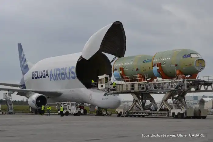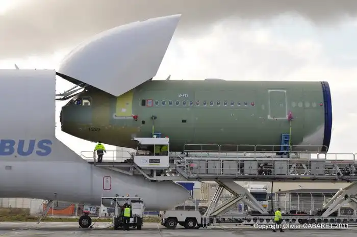 Для транспортировки крупногабаритных грузов по воздуху используют широкофюзеляжный транспортный самолёт Airbus A300-600ST Super Transporter, на борт которого могут поместиться даже другие самолеты. Далее предлагаем взглянуть на сам самолет, а также на процесс его загрузки и разгрузки.