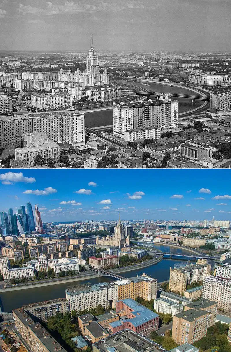 Вид на гостиницу «Украина», Москву-реку и Новоарбатский мост, 1960/2015 год