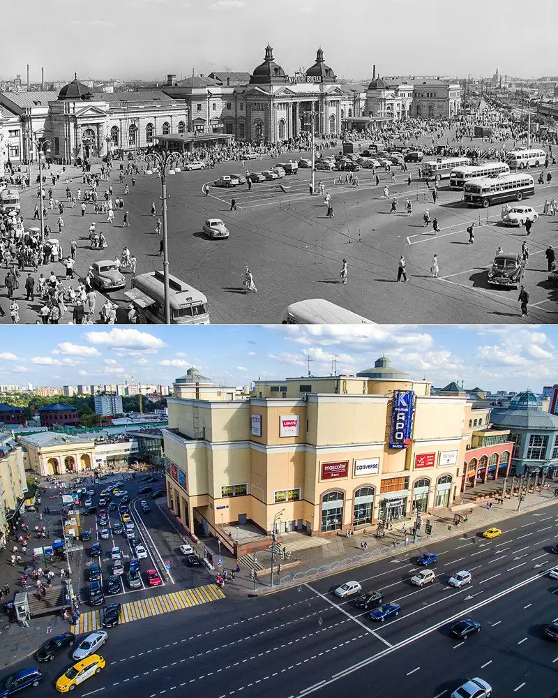 Вид на Сухаревский рынок, 1920 год. Вид на Большую Сухаревскую площадь и здание Научно-исследовательского института скорой помощи им. Н.В. Склифосовского, 2015 год