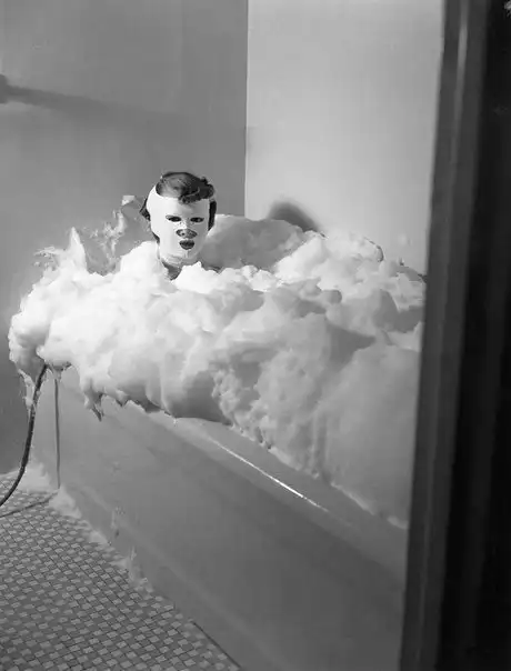 Ив Кляйн во время изготовления "произведения" Anthropométries de l’Epoque bleue ("Антропометрия голубого периода"); Франция, 1960 г