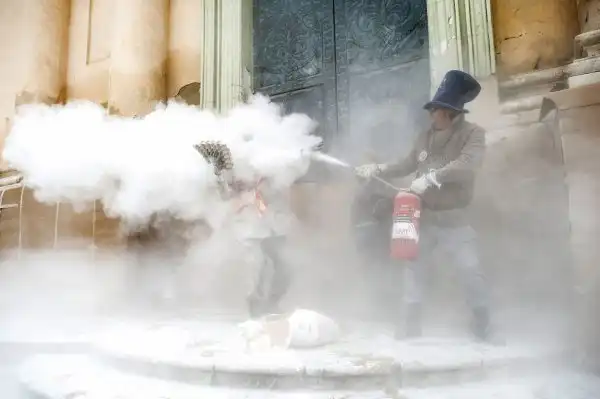 Мэр и его окружение защищаются теми же способами. Именно эта часть фестиваля, как самая зрелищная, чаще всего попадает в объективы камер.