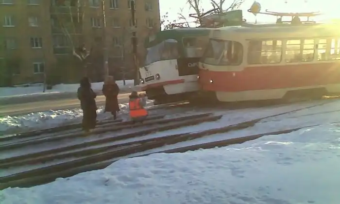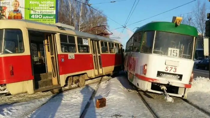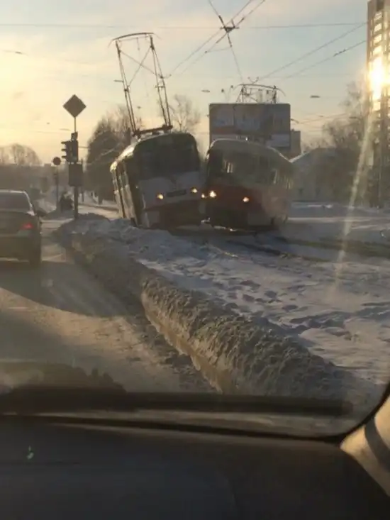 Утром 3 января в Екатеринбурге на перекрестке улиц Титова и Ферганская произошло необычное ДТП, в котором столкнулись два трамвая. Оба машиниста двигались на мигающий желтый сигнал светофора и пытались проскочить, но удача их подвела. В результате происшествия никто не пострадал, а на восстановление движения трамваев ушло около часа.