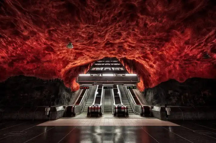 Вот так "адски" красиво выглядит одна из станций метро в Стокгольме