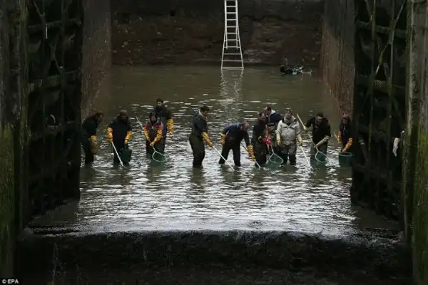 При осушении были обнаружены просто невероятные находки - на дне канала лежали старые радиоприемники, тележки из магазинов, куча велосипедов, самокатов и даже мотоциклы. Кроме того, было выловлено 4,5 тонны форели, карпа и леща.