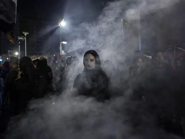 Иранская женщина идет сквозь клубы дыма, вызванные сжиганием могильной травы (гармалы). Считается, что этот ритуал отгоняет зло