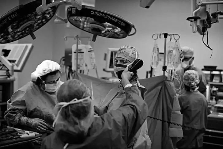 Доктор Саллес и доктор Гарланд в операционной. Саллес по телефону отменяет ужин с матерью, так как операция продлится на несколько часов дольше из-за обнаруженной у пациента опухоли