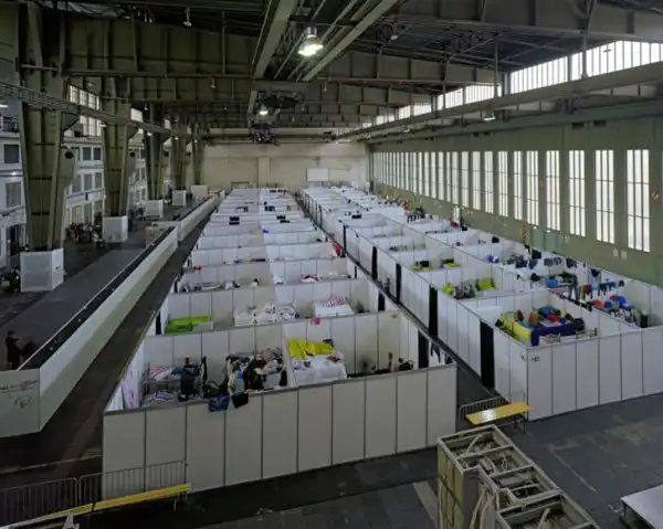 Берлинский аэропорт Темпельхоф - пристанище для беженцев в Германии. Раньше здание использовалось нацистами