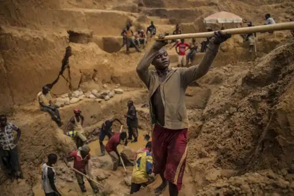 Работники в Конго ищут необработанные алмазы в шахте Кангамбала. В ДРК это место является сердцем алмазодобывающей промышленности