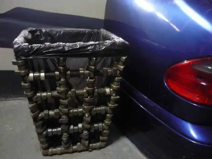 Авторазборка в городе Шымкент, Казахстан, представляет собой уникальное место, где можно не только купить интересующую вас деталь, но и полюбоваться эксклюзивными предметами интерьера, изготовленными из различных деталей автомобилей. Столы, диван, камин и даже ступеньки здесь выполнены из кузовных элементов машин, в то время как люстра представляет собой блок 5-литрового двигателя Mercedes, урна изготовлена из распределительных валов, а урна сварена из коленчатых валов и маховика.
