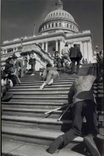 Активисты-инвалиды покинули свои коляски и поползли по 83 ступеням Капитолия США, требуя принятия закона об инвалидности, 12 марта 1990 года