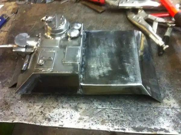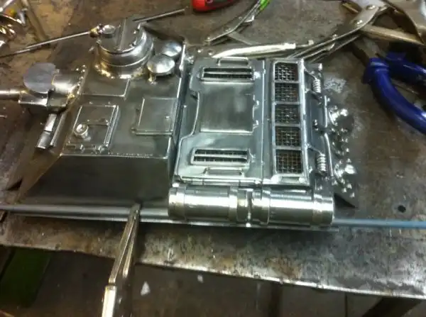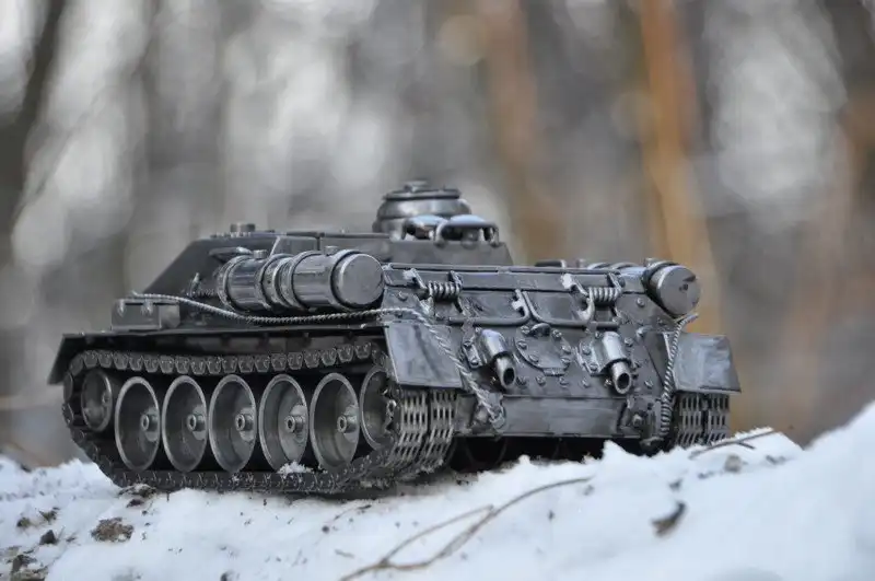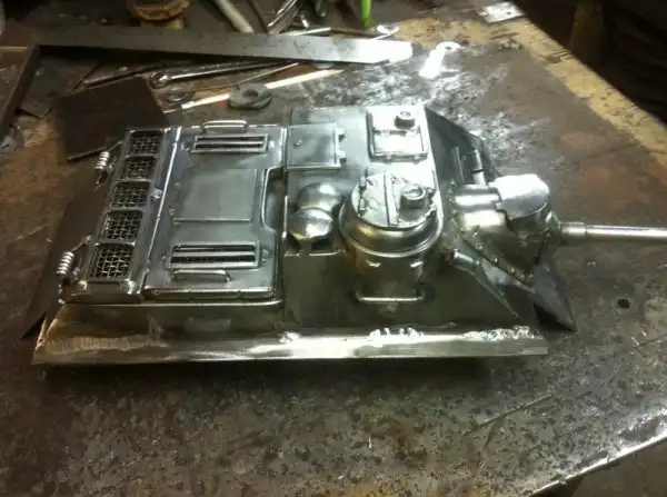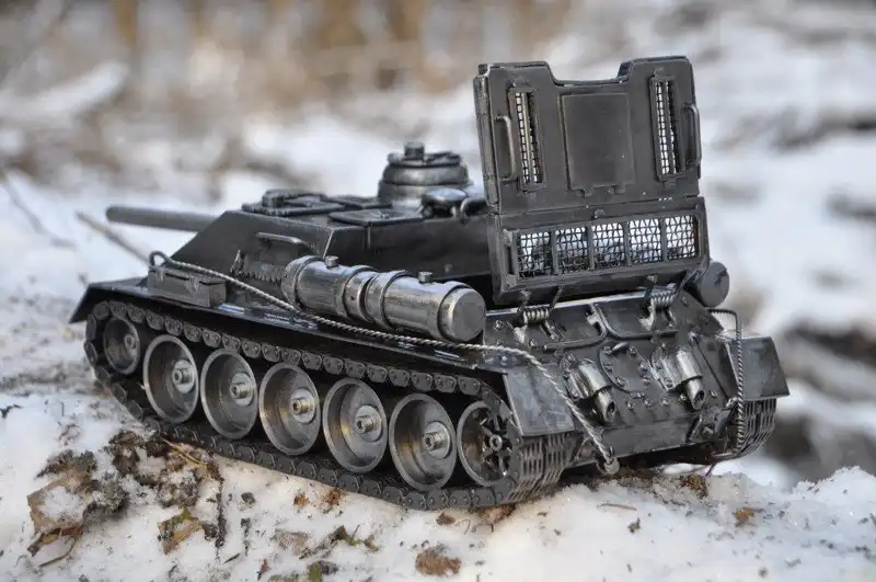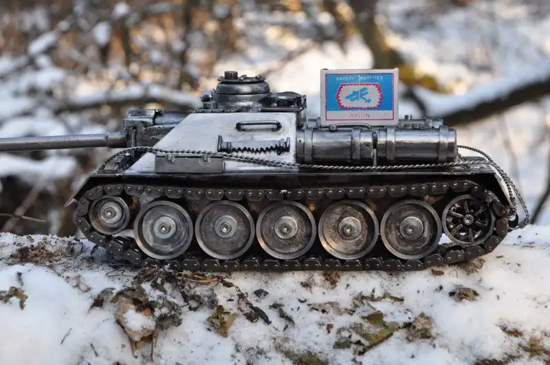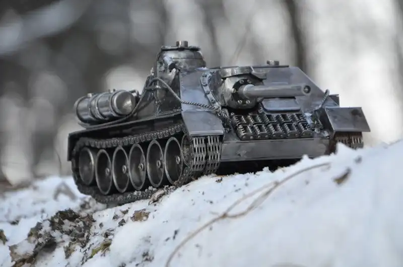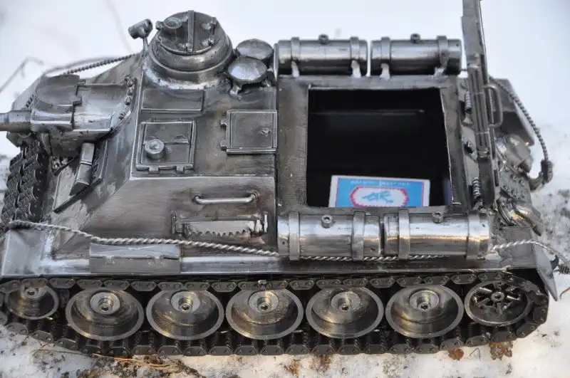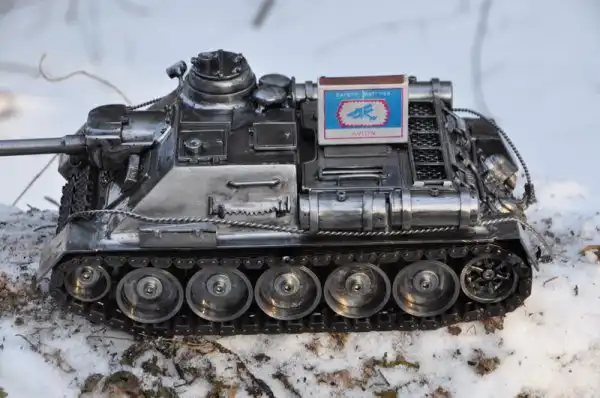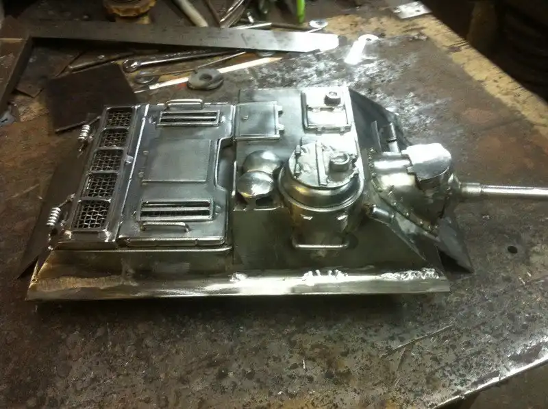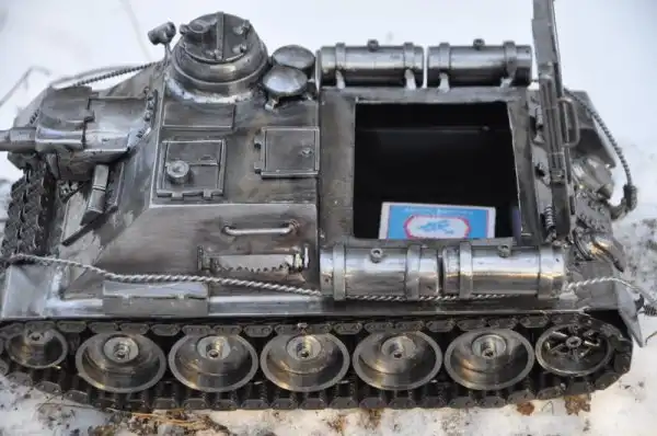 Той зимой делал тигр. Человек которому делал попросил сделать ещё что ни будь времён войны. Только попросил т — 34 не делать. Вот что получилось. Длинна со стволом 40 см ширина 17см.Вес получился 4 кг. Ну отсек для заначки предусмотрен. Ну и немного фотографий как делалось.