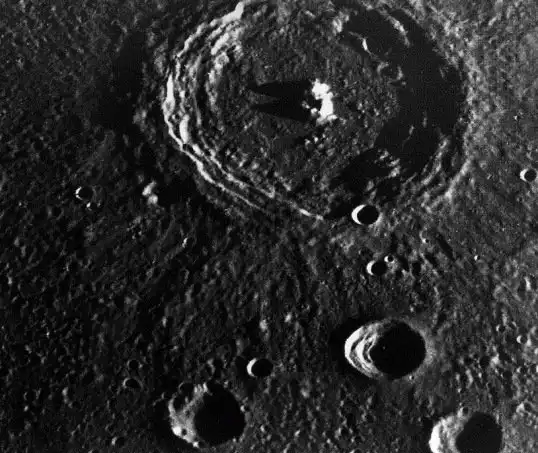 Снимок фрагмента Меркурия, сделанный аппаратом Mariner 10, 29 марта 1974 года