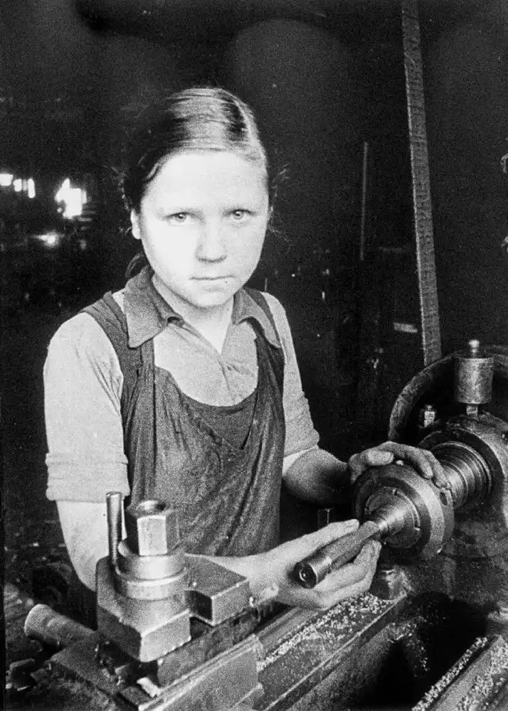 "Блокадная Джоконда". Девушка 15-ти лет за токарным станком