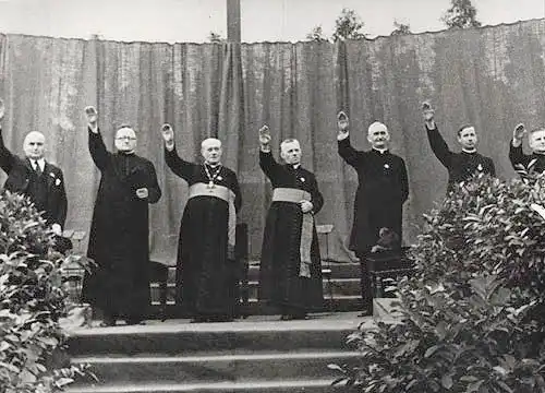 Священники салютуют Гитлеру во время католического собрания молодежи. Берлин, 1933