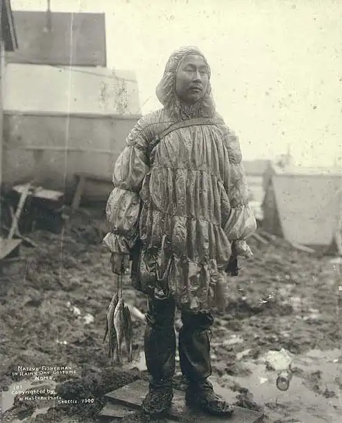 Алеут в одежде из кишок морского льва. Аляска, 1900 год