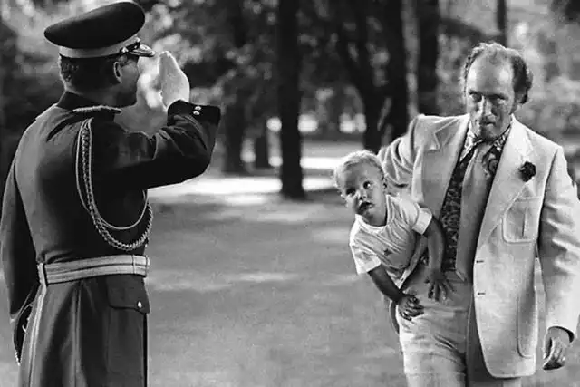 Премьер–министр Канады Пьер Эллиот Трюдо несет подмышкой будущего премьер–министра Канады Джастина Трюдо (одержал победу на выборах 20 октября 2015).