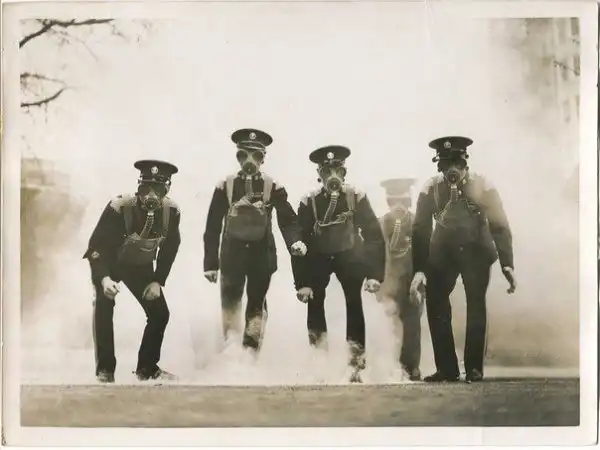 Лондонские полицейские во время учений, 1935 год.