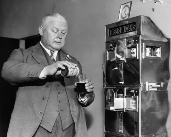 Один из первых автоматов по продаже баночного пива. Лондон, 1937 год