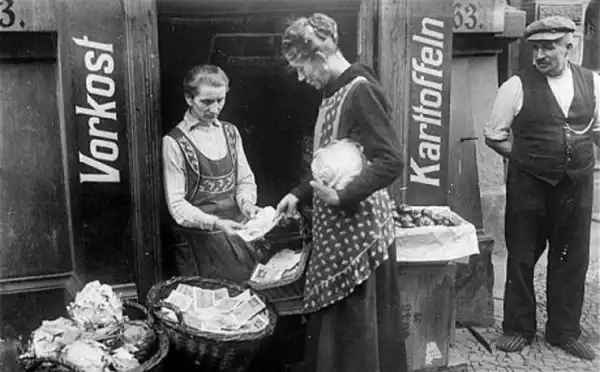 Во время гиперинфляции в Германии зарплату рабочим платили два раза в день – утром и вечером, а в обед отпускали с работы, чтобы они успели себе что-нибудь купить на свои стремительно дешевеющие деньги