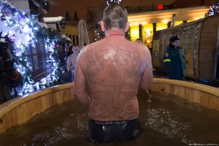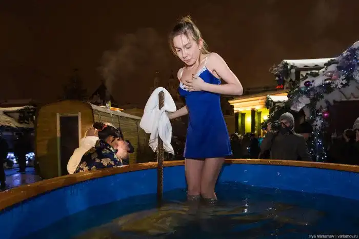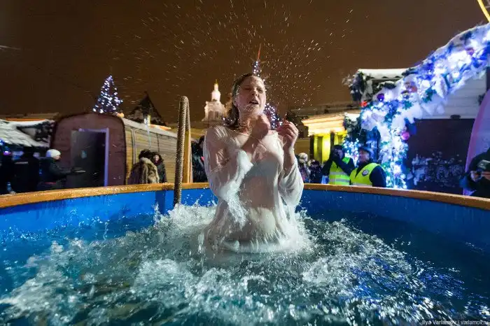 19 января в России отмечают один из самых главных религиозных праздников - Крещение Господне. По традиции люди окунаются в прорубь с водой, хотя само купание не является церковным обрядом. По всей стране организуют купели в природных или искусственных водоемах, а также устанавливают бочки с водой. О том, как проходят крещенские купания в этом году, расскажут фотографии из блогов и соцсетей.