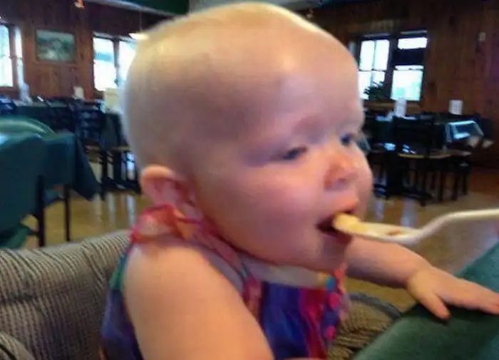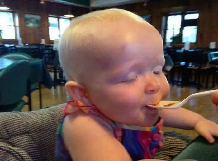 Этот малыш впервые в жизни попробовать карамельный пудинг и, судя по его реакции, он ему очень сильно понравился.
