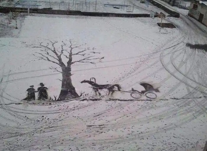 Каждое утро после снегопада на парковке во дворе одной из многоэтажек Ижевска появляются эти великолепные картины, которые радуют глаза местных жителей. Автором рисунков является местный дворник Семен Викторович.