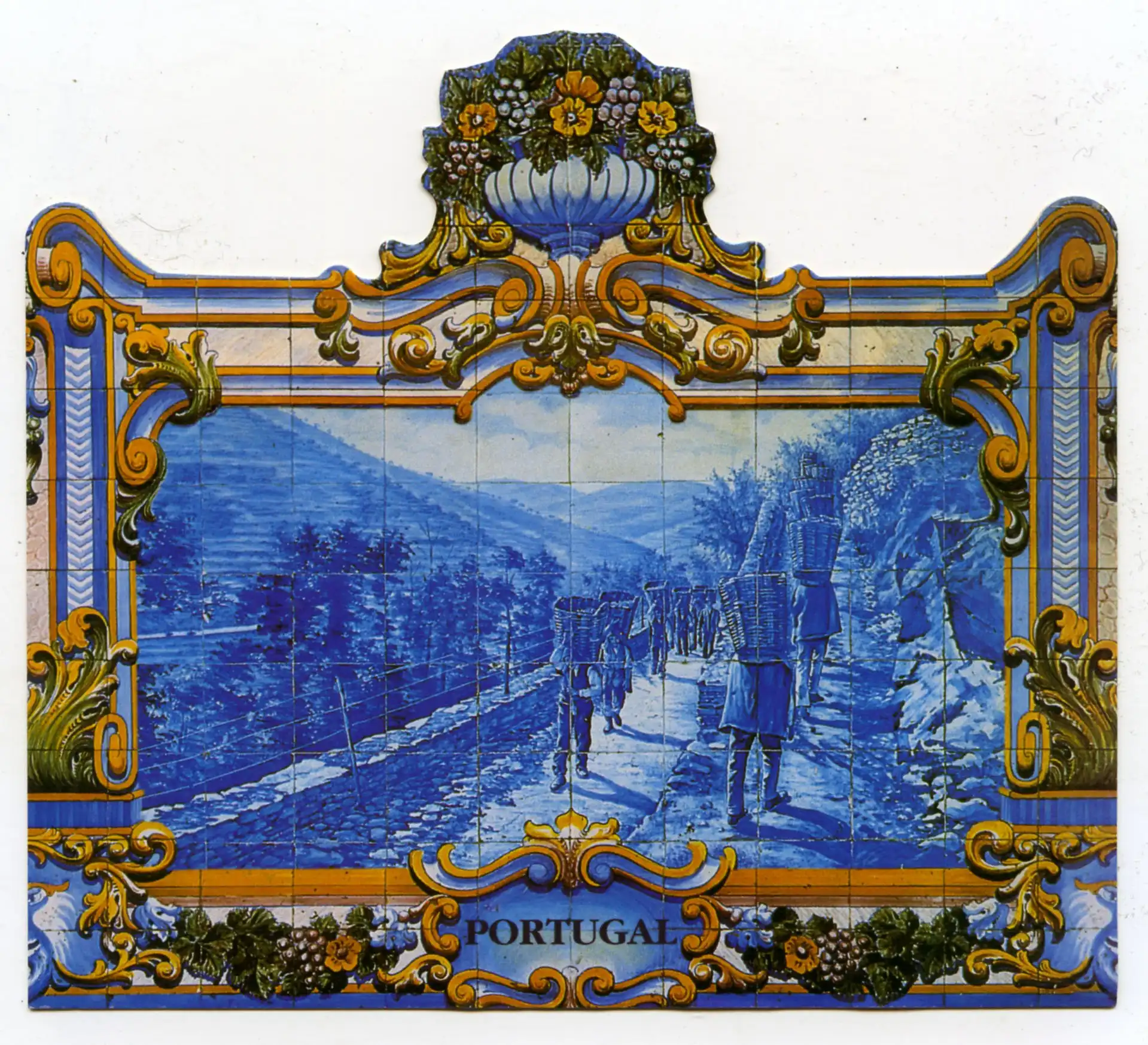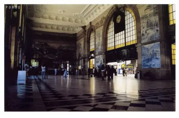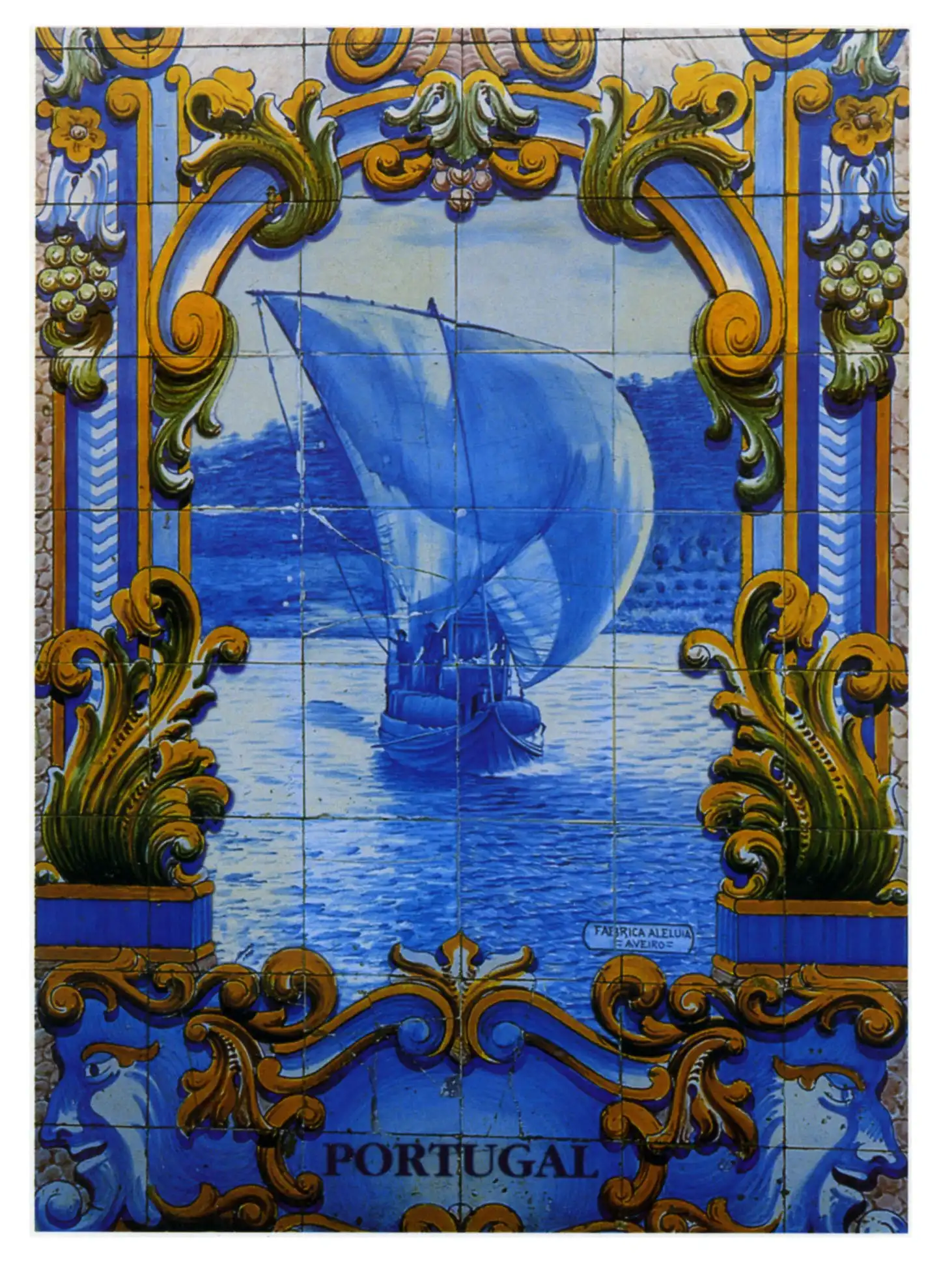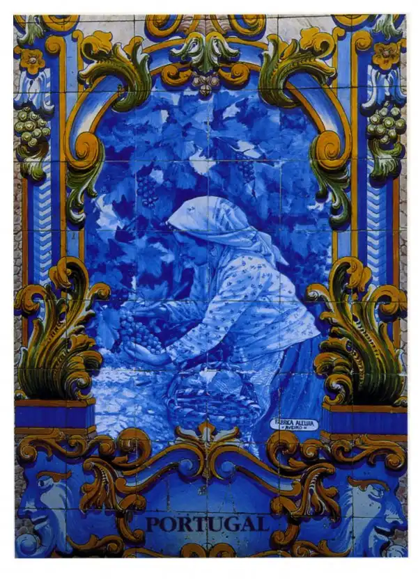 Визитной карточкой архитектуры Португалии является масштабное использование в архитектуре и облицовке домов керамической плитки с рисунками преимущественно в голубых с белым тонах. Художники создавали целые живописные панно из керамических плиток “ажулейош”. Вот, например, целые панно на стенах вокзала Порту.