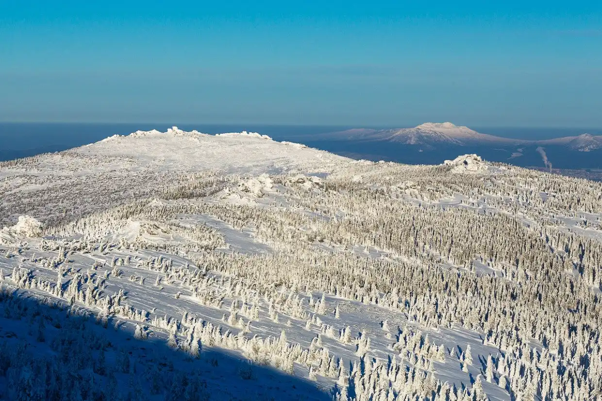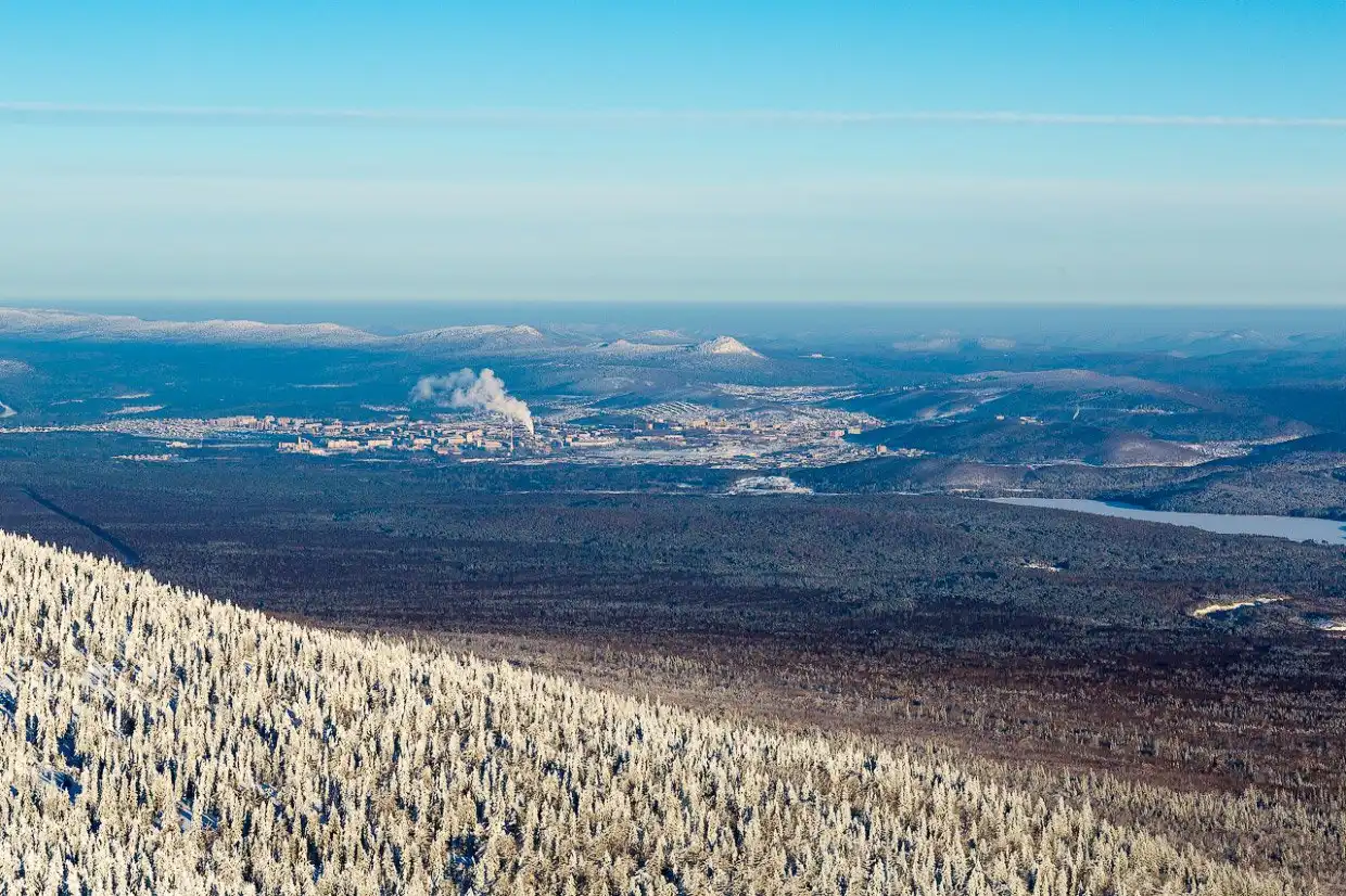Вид на плато и Первую сопку Уреньги. Справа — Таганай, на котором можно различить Откликной гребень и гору Круглицу.