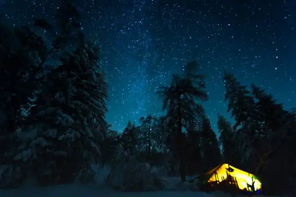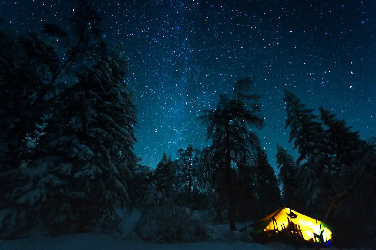 Ночевать встали на перевале. Он был поросший лесом, поэтому мы нашли уютную полянку и расположились на стоянку. Проблемная это штука — в сильно минусовую и очень ветреную погоду приготовить на костре.