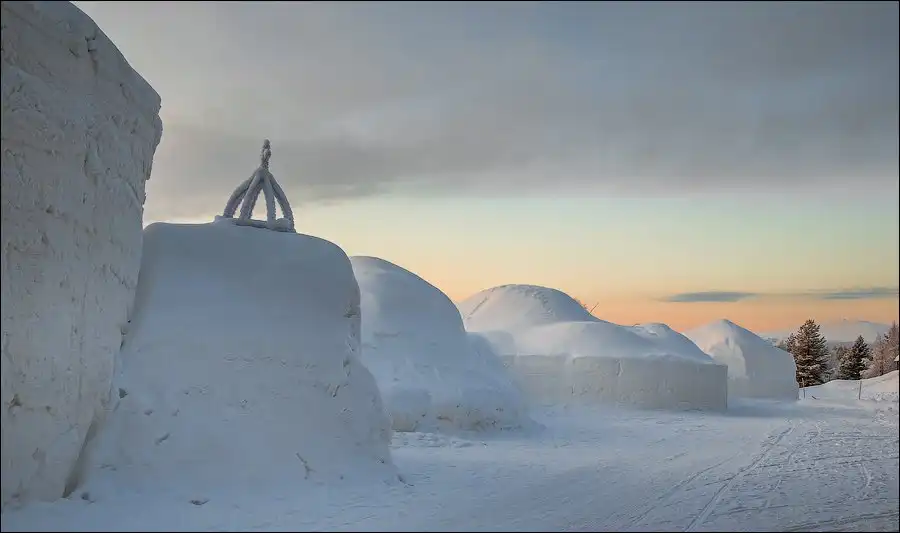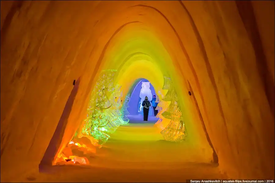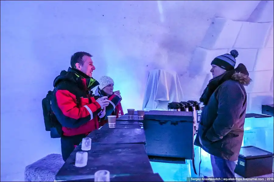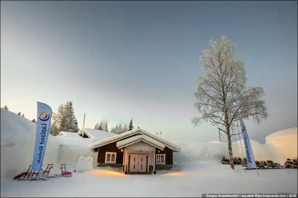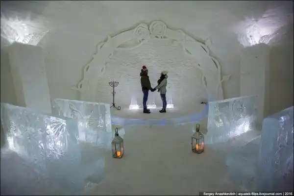 Ежегодно на экскурсию в отель Snow Village, целиком построенный из снега и льда, приезжает около 30 тысяч человек. И 1.5 тысячи из них решается таки остаться здесь на ночь, чтобы навсегда запомнить эти ощущения. Еще бы, ведь ни одни номер не повторяет друг друга, на стенах каждого вырезаны очень крутые декорации, здесь есть ресторан, бар, кинотеатр и даже церковь, в которой проводят свадебные церемонии!