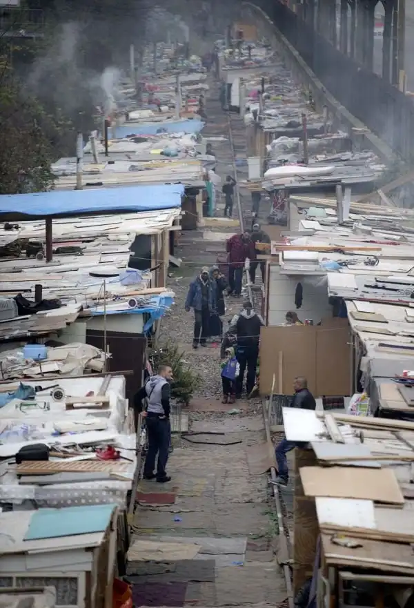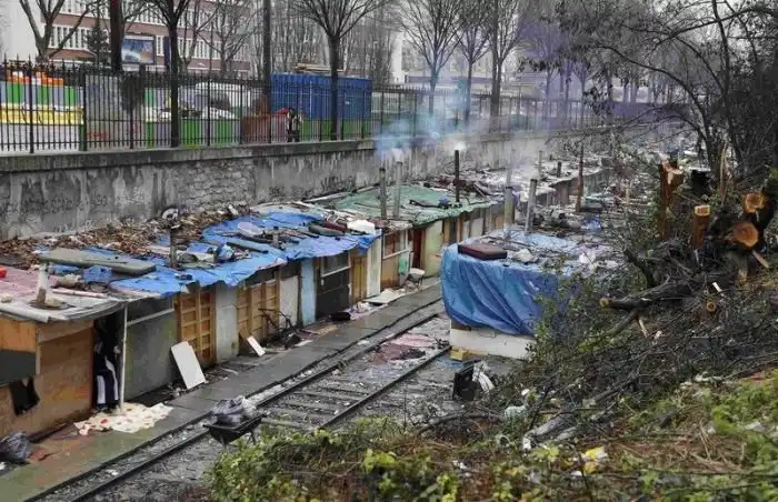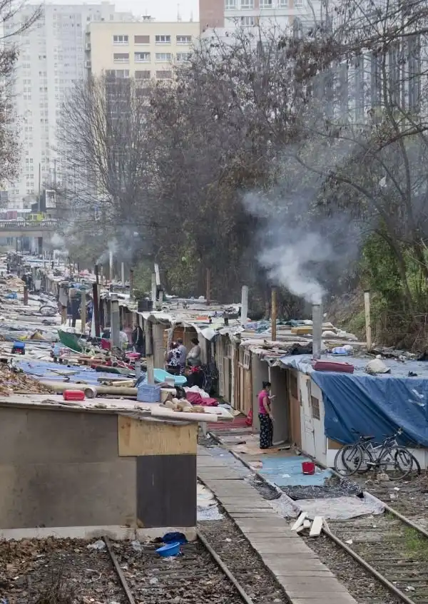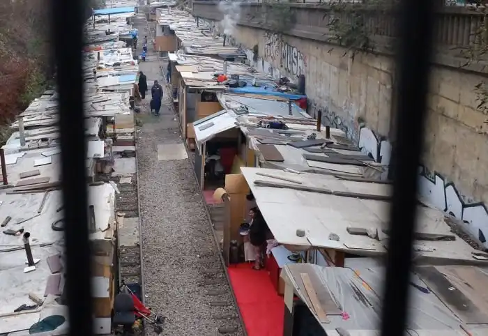 На окраине Парижа прямо на железнодорожных путях, которые, вероятно уже не используются, выросла целая цыганская деревня. Свои скромные жилища цыгане построили из досок, металлолома, строительных отходов и мусора. Однако, согласно решению властей, всех жителей этой компактной деревни ждет скорое выселение.