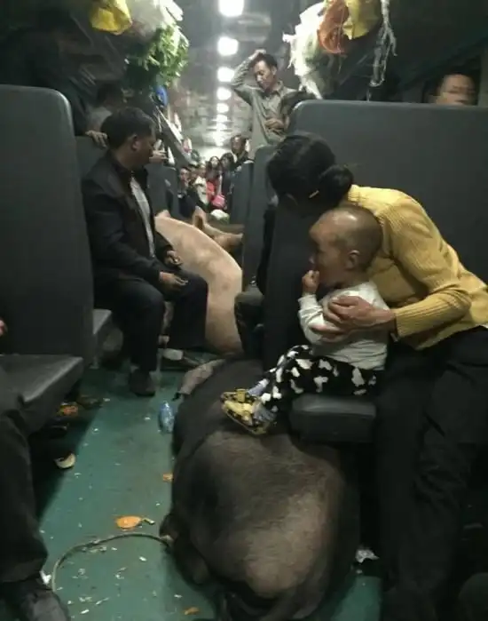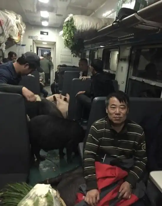 Бедному китайскому фермеру, везшему свиней на продажу, разрешили вместе со своим живым товаром сесть в поезд. Кондуктор и пассажиры с пониманием отнеслись к проблеме мужчины, которому в противном случае пришлось бы идти пешком целых три дня. Животные вели себя вполне адекватно, а потому все благополучно добрались до точки назначения.