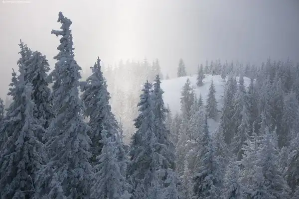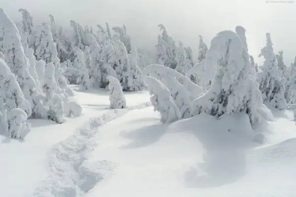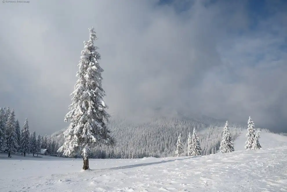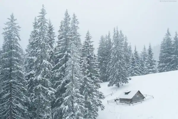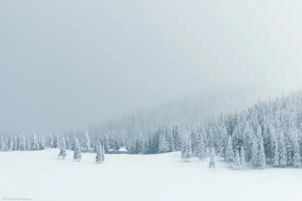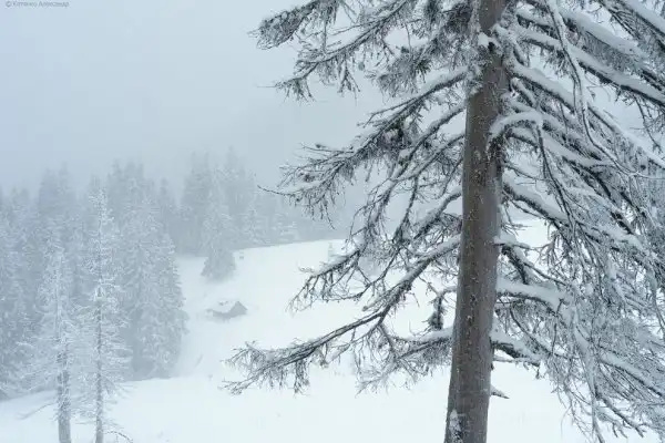 Так, чтобы падающий снег налипал на объектив и в минус 25. Или чтобы объектив покрывался инеем после каждого кадра, требуя вновь его протереть. И чтобы не было выше, чем минус 25. И чтобы весь конденсат собирался именно на моем спальнике, чтобы дым от костра никаким способом не мог покинуть колыбу. И конечно же, никакого света, только туман и облака, только серость и белость.