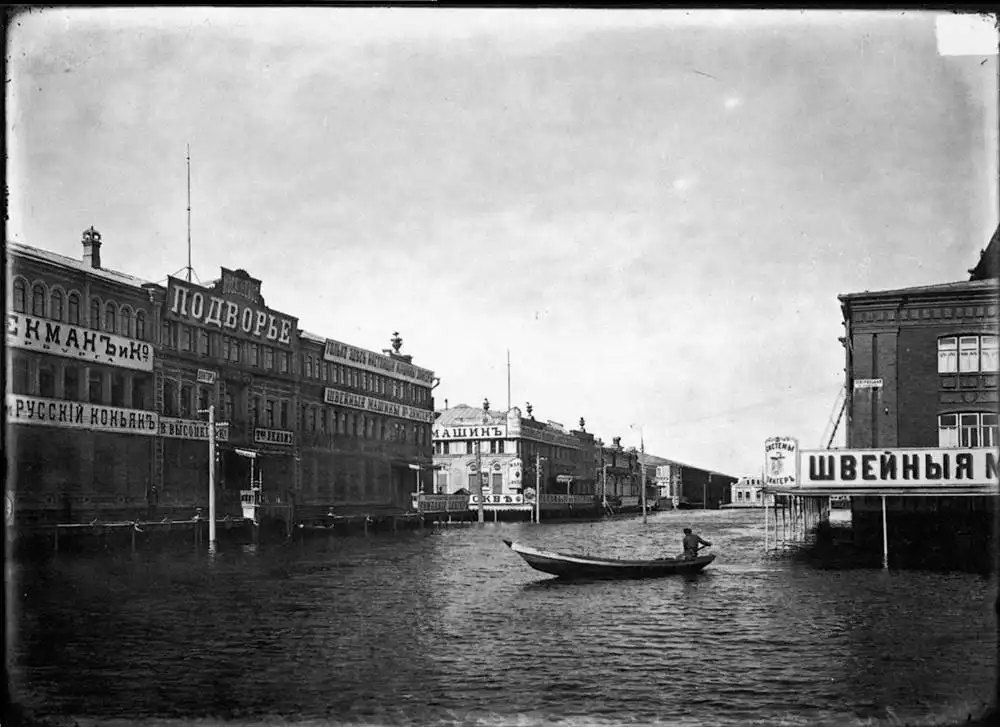 Театральная площадь Нижегородской ярмарки во время половодья
