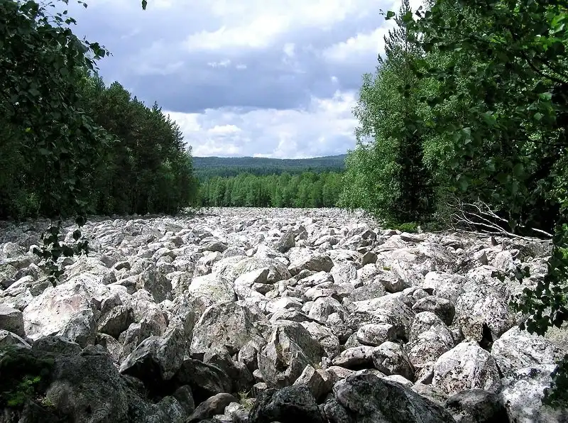 У подножия утесов Таганая находится еще одна природная достопримечательность – каменные реки. Это редкое природное явление представляет собой хаотическое нагромождение каменных глыб, которые, словно исполинские капли, застыли в потоке, спускаясь по склонам гор. Самая длинная каменная река тянется на 5-6 километров, “протекая” между горой Двуглавая сопка и Средним Таганаем. В основном она состоит из авантюрина – разновидности кварцита. Это месторождение является гордостью и достоянием страны, тем более что равное ему по красоте и размерам камней есть только в Индии и больше нигде на планете.