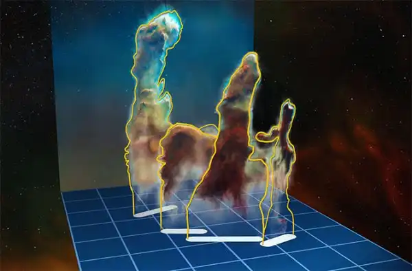Вы, возможно, помните старые наблюдения Хаббла "Столпы творения", которые оказались гигантскими колонами газа и пыли, с молодыми звездами в их звездных коконах? Теперь Хаббл вновь посетил Столпы, чтобы изобразить больше деталей в 3-D виде этого знаменитого фото.