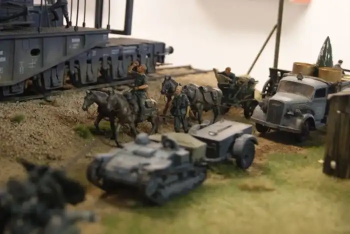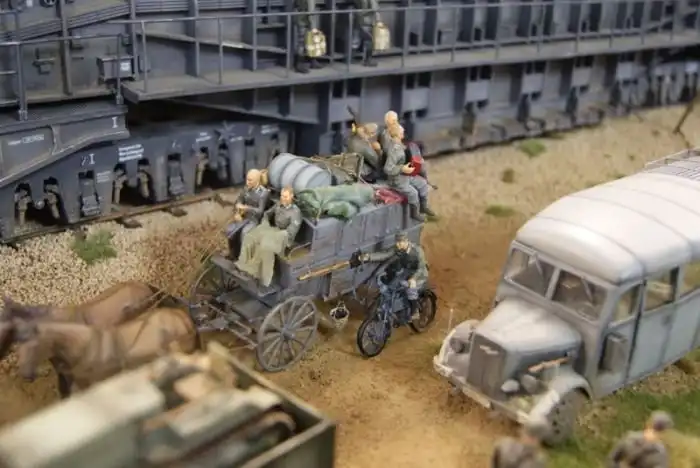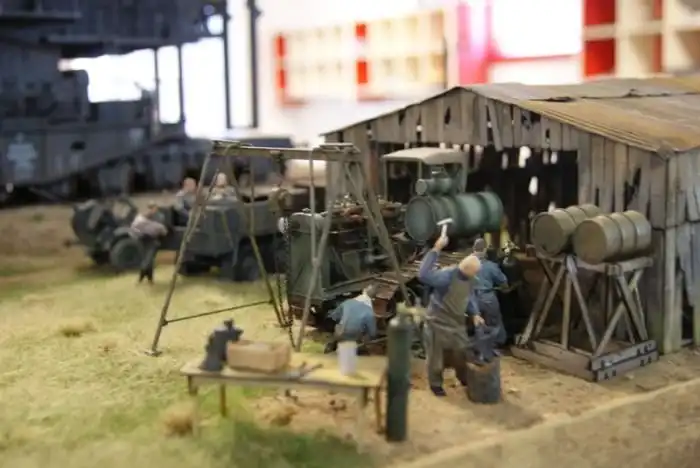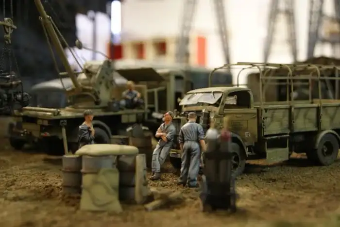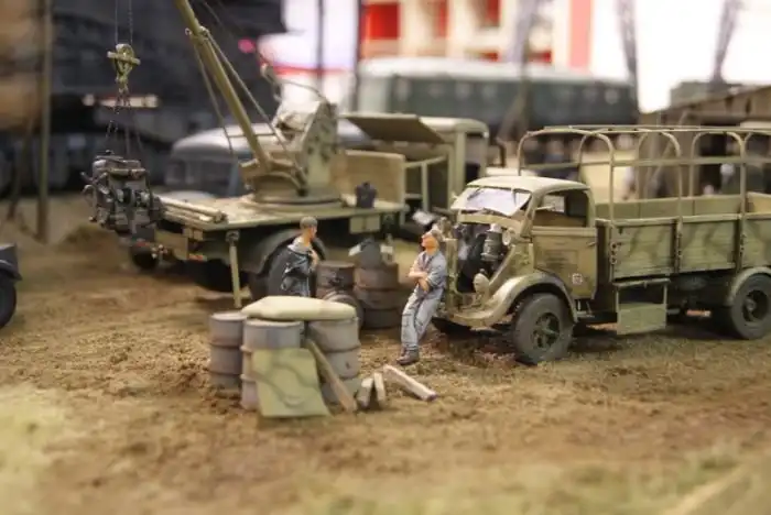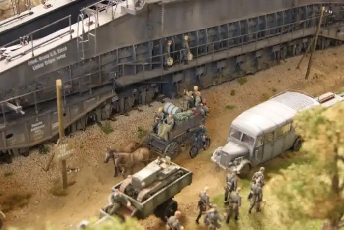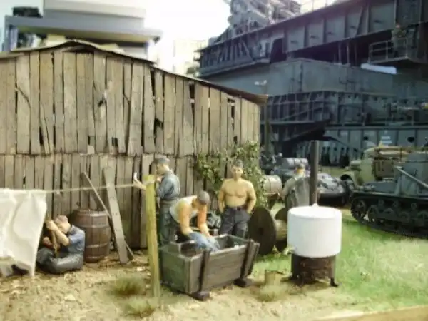 Перед вами уникальная диорама Роджера Пиртла (Roger Pirtle), выполненная в масштабе 1:35. Автор представляет нашему взору сразу несколько сцен, происходящих в одном месте, и поражающих высокой детализацией и реалистичностью моделей. Работа над проектом длилась не один год и результат, мягко говоря, впечатляет.