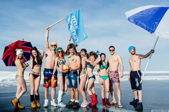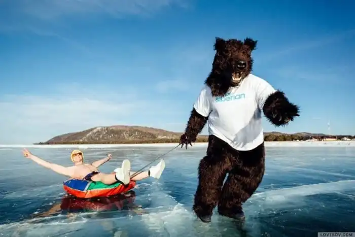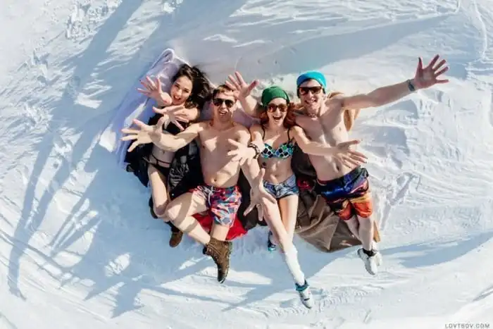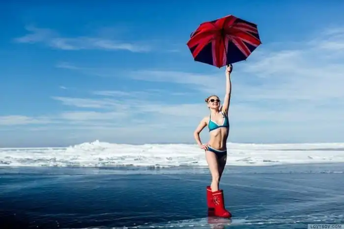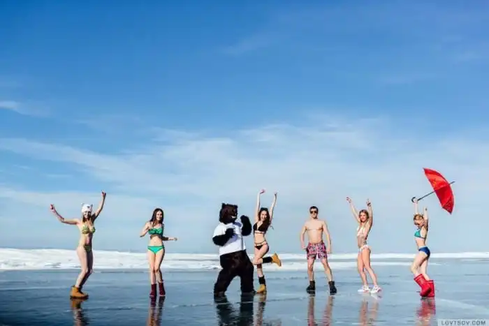 На Байкале при 20-градусном морозе прошла вечеринка в купальниках, устроенная проектом «Я*Сибиряк». В течение 5 часов 10 молодых людей развлекались и согревались всевозможными способами. Они играли в волейбол, пили горячий чай, танцевали, дурачились и фотографировались. «Было весело и не холодно! Под ногами трещал лед - Байкал живой, он дышит, и иногда казалось, что мы качаемся на его волне», - поделилась впечатлениями одна из участниц мероприятия Алена Исаева. «Ослепительный белый песок, красивые синие волны до горизонта — такие потрясающие виды вы вряд ли найдете летом», - отметил организатор вечеринки Михаил Губаль. Проект «Я*Сибиряк» стартовал в 2012 году и его целью является популяризация зимнего отдыха в Сибири.