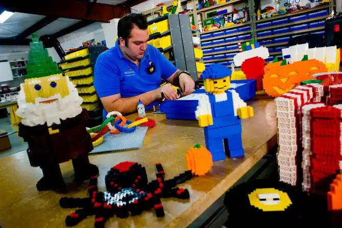 Работа этого парня заключается в том, чтобы придумывать и собирать новые модели из деталей конструктора Lego.