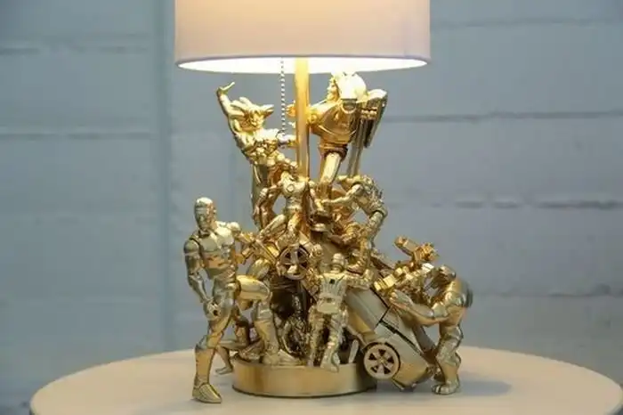 Если у вас есть старые детские игрушки и подобная лампа, можно сделать довольно интересный предмет интерьера, который поразит ваших гостей своей оригинальностью.