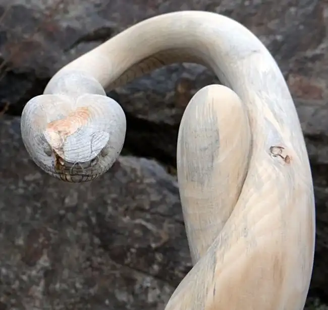 Американец Майк Стиннетт из штата Орегон работает резчиком по дереву и среди прочих его работ особенно выделяются трости. Особенность тростей Майка заключается в том, что он выполняет их в виде змей, которые удивительно похожи на настоящих.