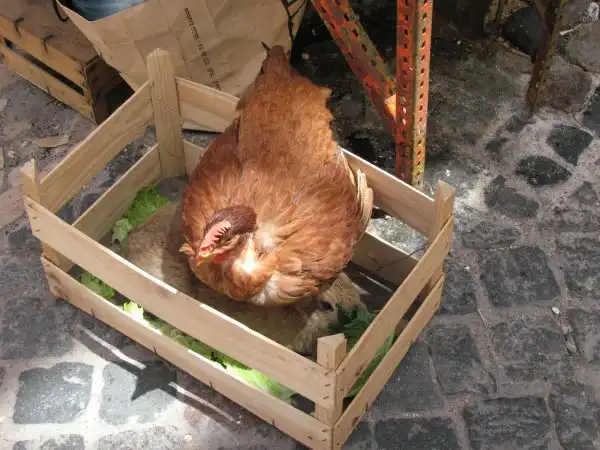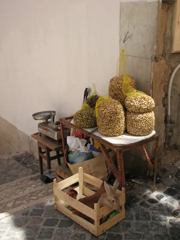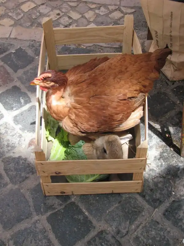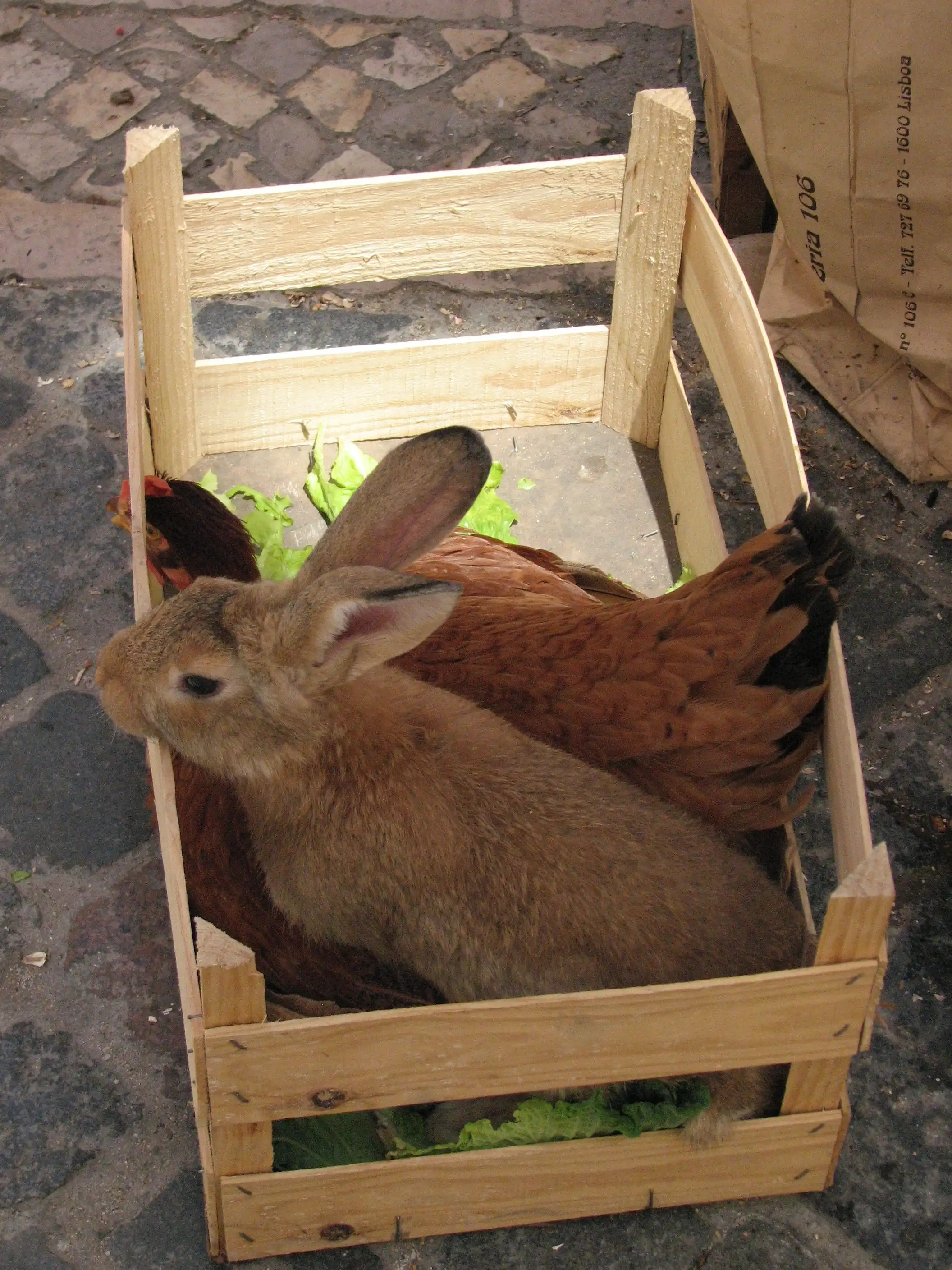 Это задняя часть маленького ресторана. Привезли припасы – виноградных улиток, курицу и кролика…
